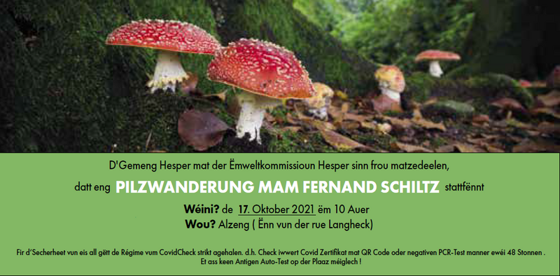 "Escapade d'automne à la découverte de champignons" avec Fernand Schiltz, dimanche 17.10.2021