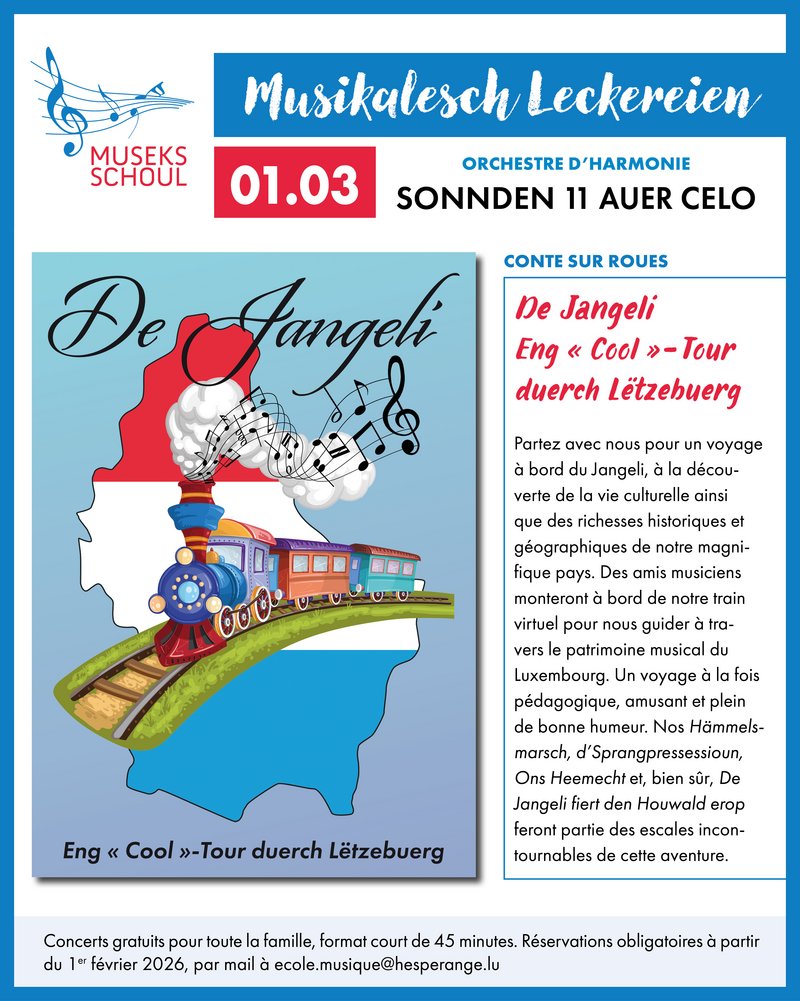 Réservations obligatoires à partir du 1er février 2026, par mail à ecole.musique@hesperange.lu